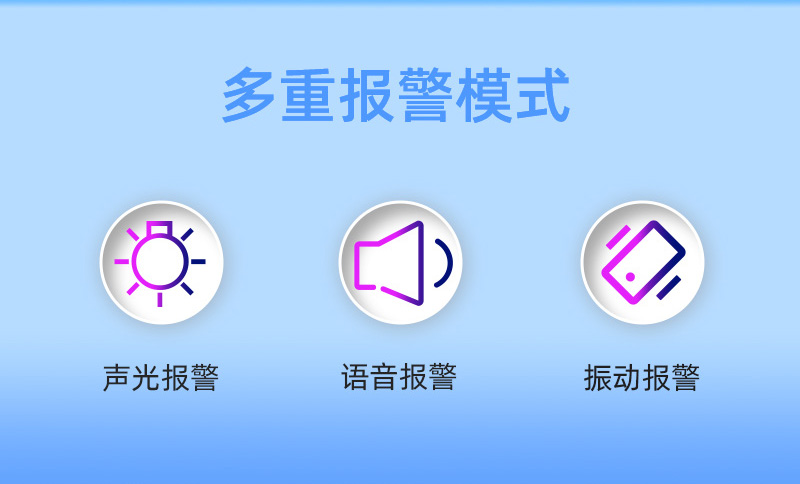 ★多種報警音可選,報警音可分別獨立設置,報警音量大於95dB,30厘米。